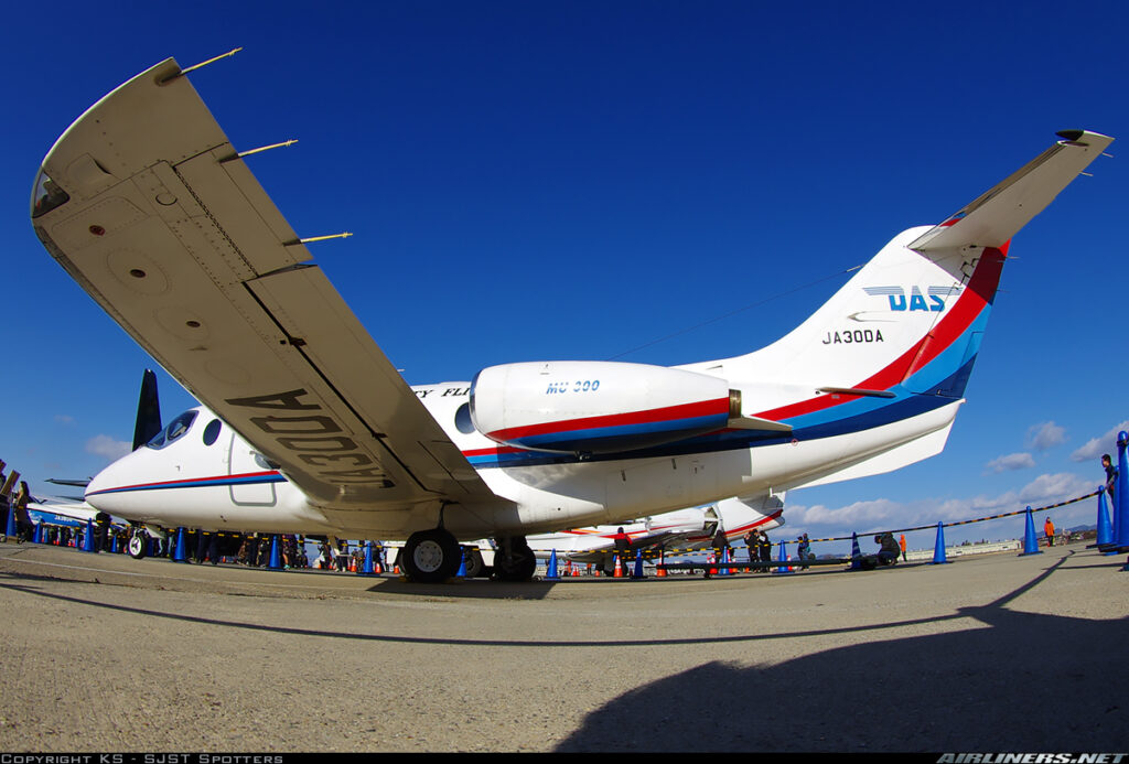 O Mitsubishi MU-300-1 Diamond I JA30DA (S/N A053SA), de 1983, visto de um interessante ângulo. Foto: https://www.airliners.net/