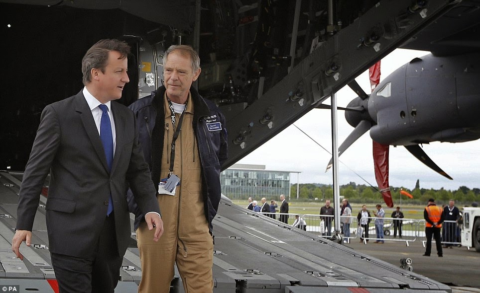 Modelo de transporte militar, entregue à Força Aérea Britânica, ganha recepção de David Cameron