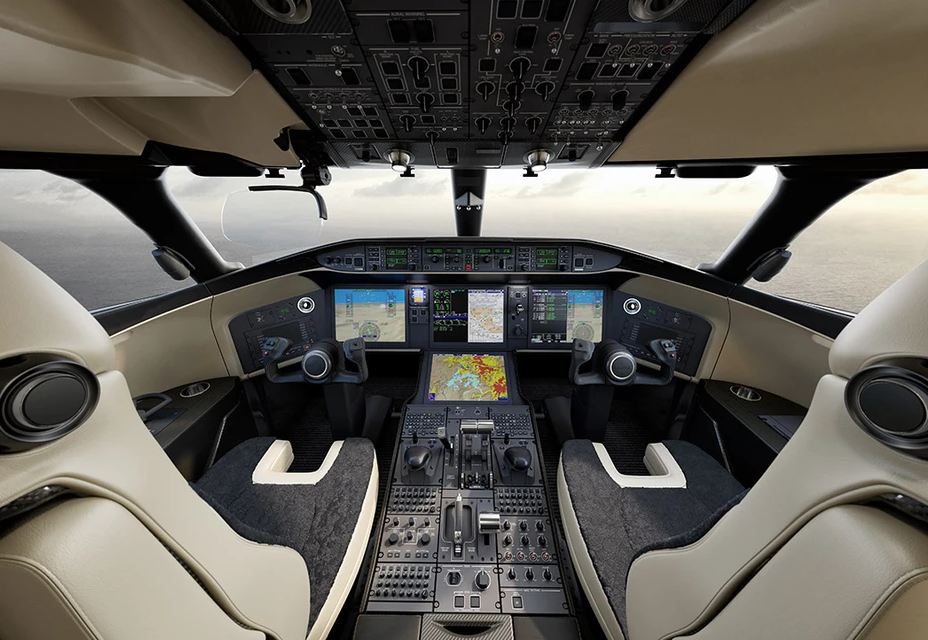 Os pilotos, no Global 5500, contam com a ultra moderna suíte Bombardier Vision Flight Deck, que combina um conjunto completo de aviônicos, com automação avançada e estética refinada para uma experiência de voo excepcional. Foto: https://bombardier.com/