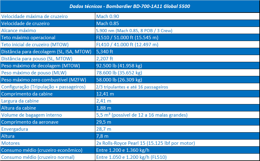 O Global 5500 é um jato executivo de longo alcance e cabine grande e é uma evolução direta do 5000.