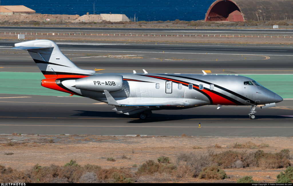 Aí está o Challenger 350 – derivado da série 300, e o qual deu origem ao atual 3500. O PR-HNG, acima, inclusive, foi o primeiro 350 brasileiro! Foto: https://www.jetphotos.com/