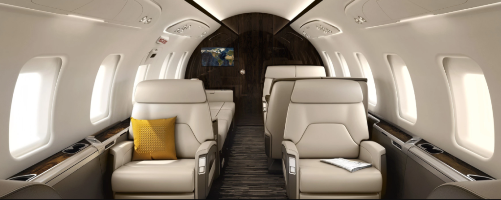 O luxuoso interior do Challenger 650. Foto: https://bombardier.com/
