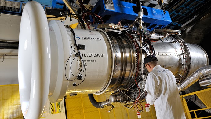 Alcançando 0,90 Mach de velocidade e 5.200 milhas náuticas (9.630 km), a motorização ficou a cargo de uma dupla de motores Snecma Silvercrest e o mais avançado sistema de comandos de voo fly-by-wire. “O motor Silvercrest é 15% mais eficiente, as emissões de CO2 são drasticamente mais baixas e o motor é extremamente silencioso, ampliando os limites do possível em um jato executivo”, concluiu Trappier, que desenvolveu o motor em parceria com a Snecma – fábrica francesa de motores para aviões e foguetes.