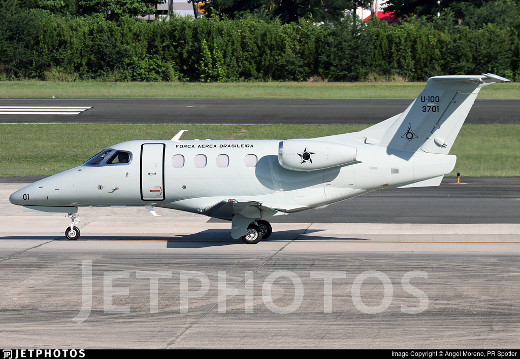A Força Aérea Brasileira – FAB – utiliza dois Phenom 100EV, denominados U-100, eles o 3701 e 3702. Foto: https://www.jetphotos.com/
