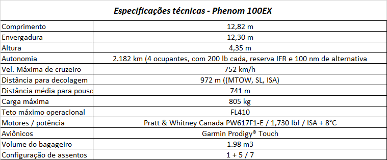 Ainda sobre o Phenom 100, é extremamente importante salientar que o modelo, além do uso executivo, é utilizado em treinamentos, em companhias aéreas e academias militares. como por exemplo, a Royal Air Force – RAF, Emirates, Etihad, sem falar na própria Força Aérea Brasileira – FAB, que o emprega como aeronave utilitária.
