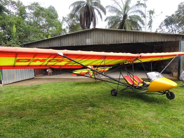 O avião foi montado pelo trio em 2010. O modelo possui um motor de 50 cavalos, equivalente a um carro 1.0. O ultraleve alcança velocidade de 80 km/h e tem um tanque que suporta até 2h20 de voo. “É uma asa-delta com motor”, resumem os construtores. “A sensação é incrível. Não tem nada melhor que você estar lá em cima, sentindo o vento na cara e apreciando a paisagem”, comenta Saulo.