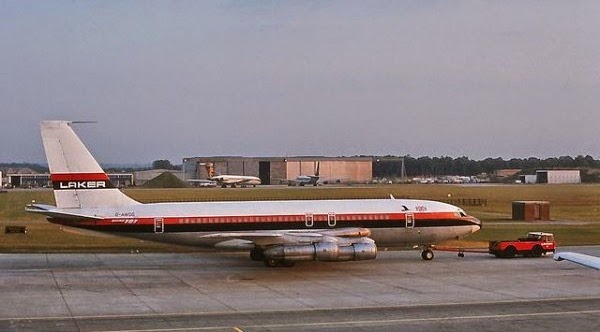 | O Boeing 707 já no padrão de cores da Laker Airways |