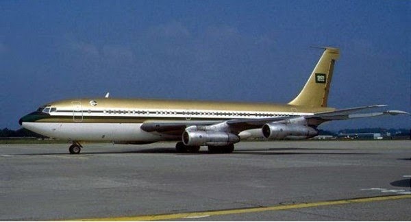 | Agora transformado em aeronave VIP, com a instalação de uma APU, nas chamativas cores quando voou para o Xeque Baroom. (Foto: Ron Cuskelly Collection) |