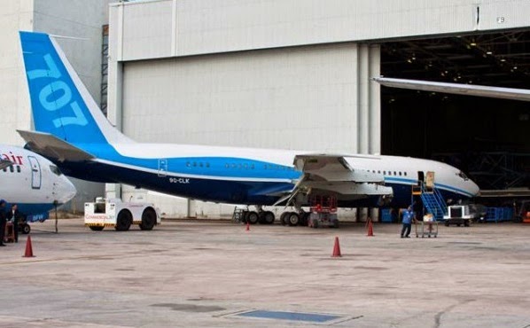 Depois de ter chegado à Florida em agosto de 2010, para manutenção, onde foi pintado com um padrão de cores imitando um dos protótipos do Boeing 787, o ‘CLK tomou o rumo da República Democrática do Congo, onde opera como aeronave presidencial do Sr. Joseph Kabila.Com o seu “roll out” da fábrica de Renton em 24 de julho de 1959 e primeiro voo em 08 de setembro daquele mesmo ano, o 9Q-CLK foi apenas o 64º 707 da linha de produção e tem, portanto, mais de 54 anos de atividade! Nada mal para uma aeronave pressurizada…