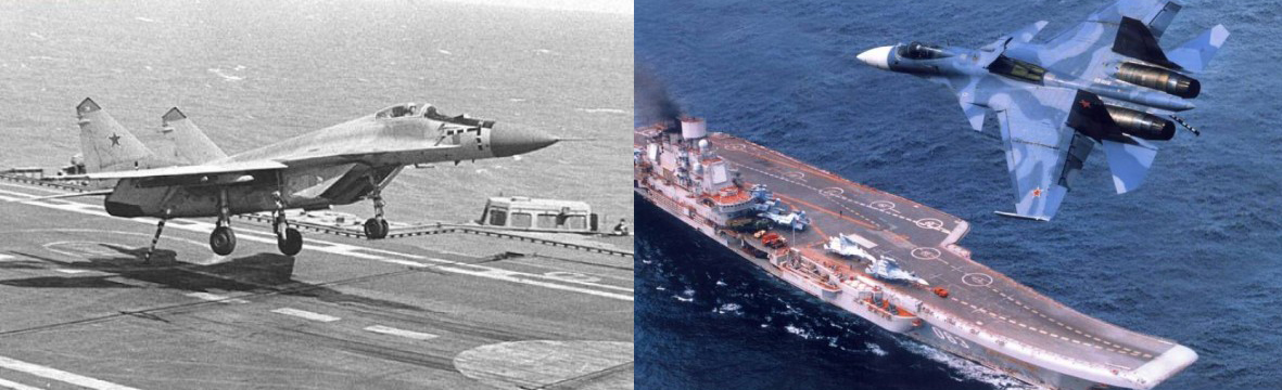 A filosofia soviética não contemplava o uso de grandes navios aeródromos para projeção de força. Pouco ela fez para adquirir tal capacidade. Durante certo tempo os soviéticos investiram no uso de aviões VTOL – Yak-38 Forger – mas o avião era inferior ao Sea Harrier e incapaz de prover defesa da frota. O MiG-29K e o Su-33 são extrapolações de projetos já testados e aprovados.